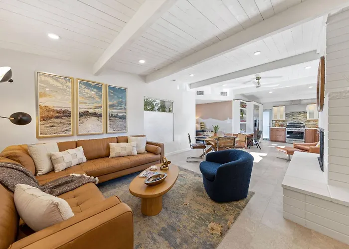 The 2-bedroom Luxurious Tennis Club Bungalow 1 With Mountain Views And Walks To Downtown Palm Springs! Villa is located a mere 6 minutes' stroll from Palm Springs Air Museum and features an outdoor pool as well as a patio for guests' pleasure. The property in situated in the Downtown Palm Springs district and boasts views over the pool.